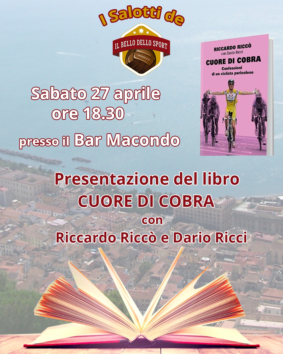 “I salotti letterari – Il Bello dello Sport” è la rassegna letteraria che sarà inaugurata, sabato 27 aprile, alle ore 18:30, presso il Bar Macondo, situato in via Lungomare Trieste, 78 a Salerno.
