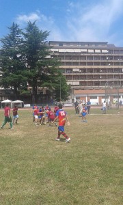 Come ogni anno, nell’ambito dello Sport days 2015, edizione numero quattordici, l’Avellino Rugby ha organizzato con il consenso del Comitato Regionale Campano, un concentramento per la categoria Under 12. Se lo scorso anno, oltre al Salerno Rugby la terza squadra presente era Le Streghe Benevento, quest’anno ospiti graditi oltre ai ragazzini terribili avellinesi e salernitani, sono stati i giovani rugbisti dell’Istituto Comprensivo Sulmona Leone di Pomigliano d’Arco, guidati dall’ex coach dei lupi per il triennio 2006/07 – 2009-10: Luigi Rea. Il concentramento, svoltosi sotto l’attenta osservazione del Tecnico Federale: Massimiliano De Falco, ha preso il via alle 10:30, le tre squadre guidate dai rispettivi tecnici, per Avellino presenti: Caliano(che si è occupato anche degli Under 6 ed Under 8) e Mernone, per Salerno, il Presidente dei Due Principati: Luigi Sbozza con il dirigente Giuseppe Forestiero e appunto Rea per la formazione partenopea. Le tre formazioni hanno svolto dapprima un riscaldamento congiunto, terminato con il classico toccatino (rugby-touch). Dopodichè, si è provveduto a far disputare un incontro vero e proprio, dove anche in questo caso i mini-rugbisti di Avellino e Salerno si sono uniti per lanciare la sfida ai giovanotti napoletani. Otto contro otto, con cambi volanti, per tre tempi da dieci minuti concordati con pausa di cinque, in un rettangolo suddiviso in misure 15×35. Il torrido sole avellinese, che scaldava il grande prato verde del Campo Coni e forse fin troppo i numerosi visitatori che incuriositi assistevano al match, non ha impensierito i piccoli protagonisti in erba, che hanno sfoggiato un incontro avvincente senza esclusione di colpi. La pattuglia irpino/salernitana che da due anni oramai si conosce, è apparsa più esperta, affiatata ed organizzata rispetto a quella napoletana, reduce comunque dalla bella figura effettuata al Torneo Nazionale Studentesco di Fano, ha iniziato sin dalle prime battute a chiudere nella propria area di meta gli avversari, che comunque si è difesa con ordine, ascoltando i suggerimenti del vulcanico trainer pomiglianese. I padroni di casa, una volta smesso di giocare individualmente, lasciando finalmente spazio a giocate corali, avvenute mediante una serie di passaggi, alla fine hanno avuto la meglio siglando sette mete, contro le due subite, riuscendo a portare a casa una meritata vittoria. Dopo il tradizionale saluto a centrocampo ed una rinfrescante doccia, tutti a festeggiare intorno al Terzo Tempo, preparato al solito con cura maniacale dalle mamme dei giovani rugbisti locali. Nel frattempo, il guru della kermesse avellinese: il prof. Giuseppe Saviano, Presidente del Coni Provinciale, consegnava tutte e tre le società presenti, una pergamena ricordo dove campeggiava la scritta: “ Per l’impegno profuso nell’affermare i valori dello Sport“, oltre le simpatiche t-shirt di colore bianco a tutti i partecipanti sponsorizzate dalla Kinder.