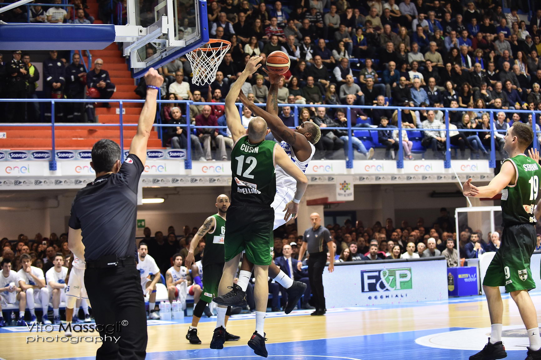 2° quarto – Randolph non fallisce la prima conclusione da tre punti del periodo. E’ il n.20 che manda a bersaglio un altro canestro ben costruito. Break avellinese di 5-0 seguito dalla tripla dall’angolo di Cardillo. La Scandone in 3′ realizza già sette punti anche se a guastare la festa ci pensa ancora Samuels che si fa largo contro Cusin. M’Baye chiude la strada ai lunghi biancoverdi nel proprio pitturato mentre dall’altra parte l’Enel aggiorna il massimo vantaggio sul + 22 (34-12). E’ un vero “massacro” come affermano i telecronisti Rai per la Sidigas in difesa. Sacripanti ordina la zone press ma Carter trova punti facili contro Fesenko. Green si iscrive a referto colpendo dai 6.75 metri ma l’Enel tira con percentuali fantascientifiche (52% da due punti e 62% dalla lunga distanza). Trova gloria Logan che in contropiede arriva fino al ferro in due occasioni mentre Thomas viene schierato da ala forte. A far la differenza è la difesa di Brindisi sugli esterni della Sidigas che collezionano soltanto 14 punti sui ventisei insaccati all’intervallo (41-26 al 20′).