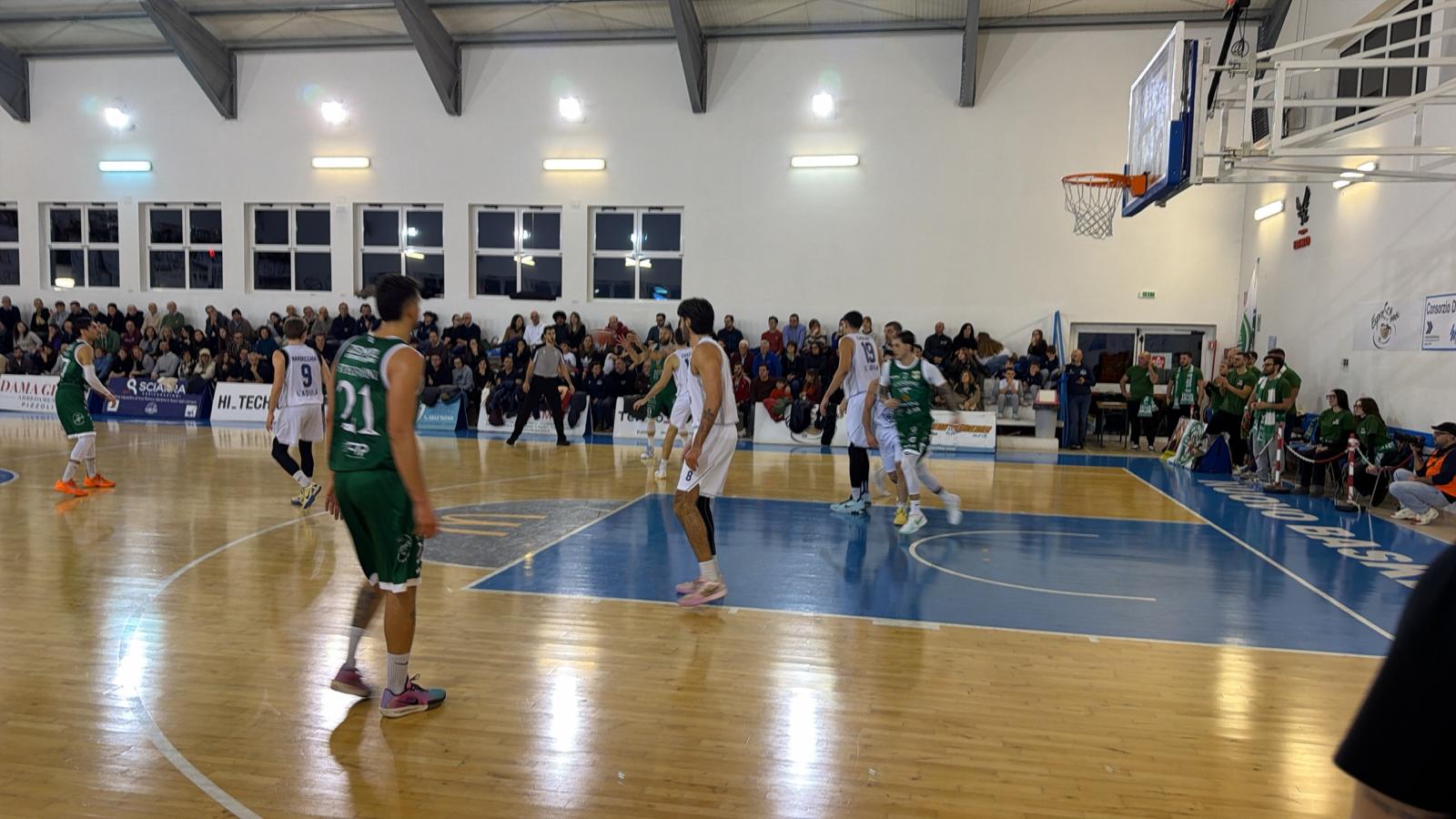 Dopo un primo tempo combattuto e sostanzialmente equilibrato, caratterizzato da continui cambi di inerzia e chiuso con i biancoverdi ancora pienamente in partita, la gara prende una direzione precisa nella ripresa. La squadra di coach Dell’Imperio rientra dagli spogliatoi senza la necessaria intensità e paga un approccio completamente sbagliato al secondo tempo.