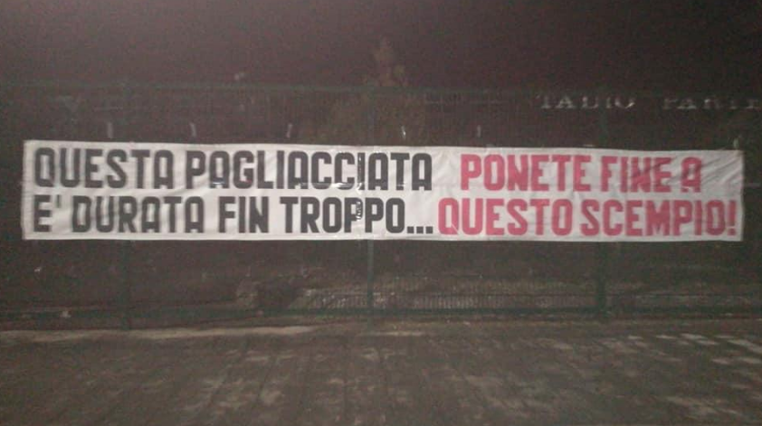 La situazione societaria biancoverde sta scadendo in uno spettacolo disarmante che per i tifosi diventa tragico. La tifoseria biancoverde fa sentire il proprio malumore giornalmente attarverso il web e attraverso i canali appropriati. Ora arriva uno sfogo attraverso uno striscione esposto all’esterno dello stadio Partenio-Lombardi: “Questa pagliacciata è durata fin troppo.. Ponete fine a questo scempio”.