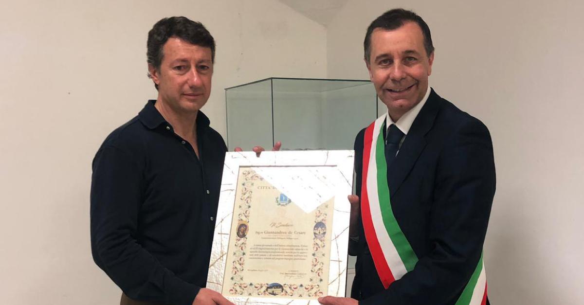 La scorsa settimana, il Sindaco di Mercogliano Massimiliano Carullo ha conferito la cittadinanza onoraria a Gianandrea De Cesare. Il conferimento è avvenuto in forma strettamente privata e riservata, data la volontà manifestata da entrambe le parti di evitare strumentalizzazioni di tipo politico a ridosso delle elezioni. La pergamena è stata consegnata dal sindaco a De Cesare al termine di gara 4 tra Avellino e Milano