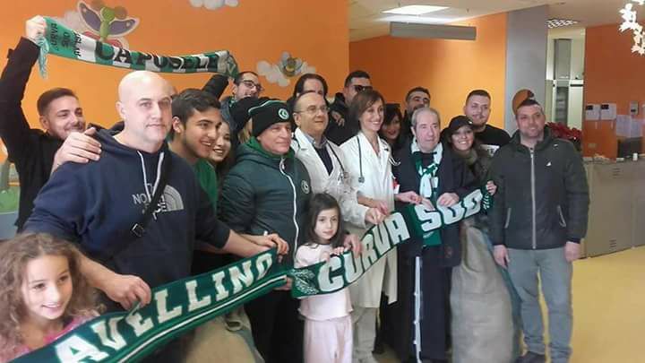 La Curva Sud del Partenio – Lombardi protagonista stamani di una iniziativa che ha visto coinvolti i bambini ricoverati presso il reparto pediatria dell’ospedale “Moscati” di Avellino. Il tifo organizzato biancoverde, infatti, ha donato dei sacchi di giocattoli raccolti nelle scorse settimane. Un gesto di solidarietà e che ha voluto regalare momenti di sorrisi e distrazioni ai più piccini. A rappresentare la curva Sud c’erano Franco Iannuzzi e Frank Pennisi. Presente all’evento anche Padre Giacinto De Gianni.