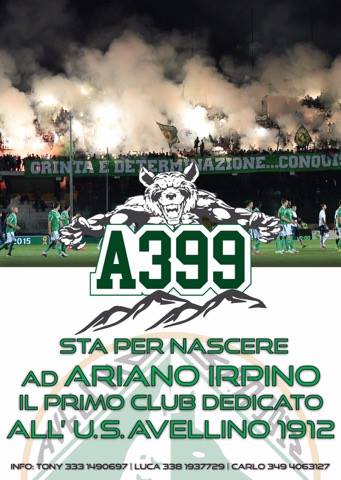 In 75 hanno già la propria tessera. Il prossimo 11 novembre sarà votato il direttivo. Una sigla: A399. Una città: Ariano Irpino. Due colori: il bianco e il verde. Un simbolo: il lupo. Un unico amore: la Curva Sud in fiamme. Il resto? Decidelo voi. Parlano i numeri e la passione. Ariano Irpino c’è e si conferma feudo indissolubile biancoverde. Una sede che sta per essere ultimata sul Tricolle. Una inaugurazione prevista entro Natale. Una locandina che fornisce info e numeri di telefono per aderire e staccare la tessera di appartenenza. “Noi siamo irpini siamo fieri e tifiamo l’Avellino fino alla fine” è lo slogan. E’ nei momenti di difficoltà che viene fuori l’appartenenza e l’orgoglio. Segnatevi la sigla (A399), segnatevi i colori. Aggiungeteci la passione. Ariano Irpino c’è. E’ tutta biancoverde. E presto avrà un club tutto suo.