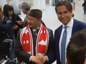 “Portaci in serie A”. In 300 lo hanno accolto all’aeroporto Bari-Palese. Lui è Datò Noordin Ahmad, imprenditore malese, da ieri nuovo socio di maggioranza del Bari. Al suo fianco Gianluca Paparesta. Sciarpa al collo, Ahmad ha dispensato sorrisi per tutti. E al coro “Dato uno di noi” ha risposto con un inchino e con qualche parola in adattato italiano. “Forza Bari forever, sono molto sorpreso di questa accoglienza. Faremo bene, porteremo il Bari in serie A”. Accompagnato dall’avvocato e consulente Grazia Iannarelli ha dato appuntamento a tutti alla conferenza stampa di quest’oggi, dove incontrerà anche il sindaco Antonio Decaro. Datò Norrdin Ahmad ha firmato venerdì un preliminare per l’acquisto del 50% delle quote del Bari e sabato assisterà al San Nicola alla sua prima partita da nuovo patron contro il Como.