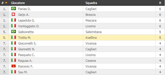 La doppietta di oggi, due gol in poco meno di 25 minuti. Entrambi di pregevole fattura, segnati tra l’altro nella ripresa e a pochi minuti dal suo ingresso in campo. Due reti che lo rilanciano nelle zone alte della classifica marcatori. Sale a quota 5 Marcello Trotta. raggiungendo il salernitano Gabionetta e posizionandosi ad uno scalino in basso rispetto a Farias (Cagliari), Lapadula(Pescara), Gejio (Brescia) e Vantaggiato (Livorno). Tutti gol su azione, nessun calcio di rigore e una voglia matta di ritornare presto titolare. Tesser lo ha messo in naftalina: due gare consecutive in panca. Martedì contro l’Ascoli (è poi comunque entrato nel finale) ed oggi (subentrato a Tavano dopo l’infortunio). Se la ride Trotta. Schizza a quota 5 e i suoi gol sono serviti a portare a casa tre punti pesantissimi. E l’infortunio di Tavano di oggi lo rilancia prepotentemente titolare. Già dalla prossima a Crotone.