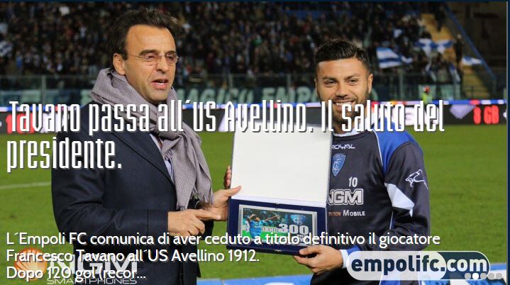 Dopo 120 gol (record assoluto con la maglia dell´Empoli) e 310 presenze Francesco Tavano, vestirà la maglia dell´Avellino e allora il presidente Fabrizio Corsi ha voluto così salutare il numero dieci azzurro: