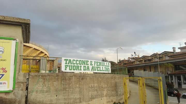 Taccone e Ferullo fuori da Avellino. E’ arrivato lo striscione di contestazione anche in città. E precisamente alle spalle della Curva Sud. Dopo Ariano, la città capoluogo. E’ il secondo: e di sicuro ne seguiranno altri. Anche in Provincia dove il cuore del tifo pulsa ancora forte. Il braccio di ferro continuerà ad oltranza indipendentemente dai risultati. Non mancherà l’appoggio alla squadra ma resterà un clima di contestazione nei confronti di Walter Taccone e del