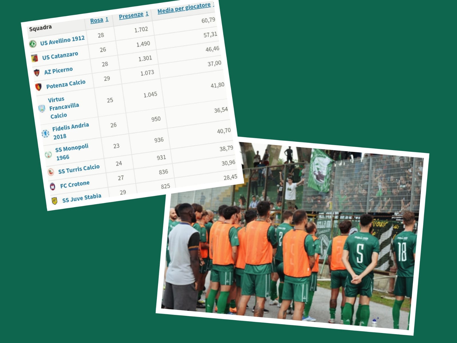 Numeri importanti, che rivelano l’esperienza e quindi l’abitudine del gruppo biancoverde che, nonostante un’età media più bassa rispetto allo scorso anno, conserva lo scettro di squadra con il miglior background storico. Un vantaggio da sfruttare soprattutto in avvio di torneo, quando l’esperienza e la conoscenza delle insidie del girone (campi difficili, partite sporche, meccanismi tattici da rodare) potrebbe fare la differenza. Alle spalle dell’Avellino, sul podio, si piazzano poi il Catanzaro (1490) e il sorprendente Picerno (1301). Più staccato il Crotone (836), così come il Pescara (528) penultimo, che vantano calciatori con più presenze nelle categorie superiori. A chiudere questa speciale classifica c’è poi il Giugliano, con appena 358 gettoni totali.