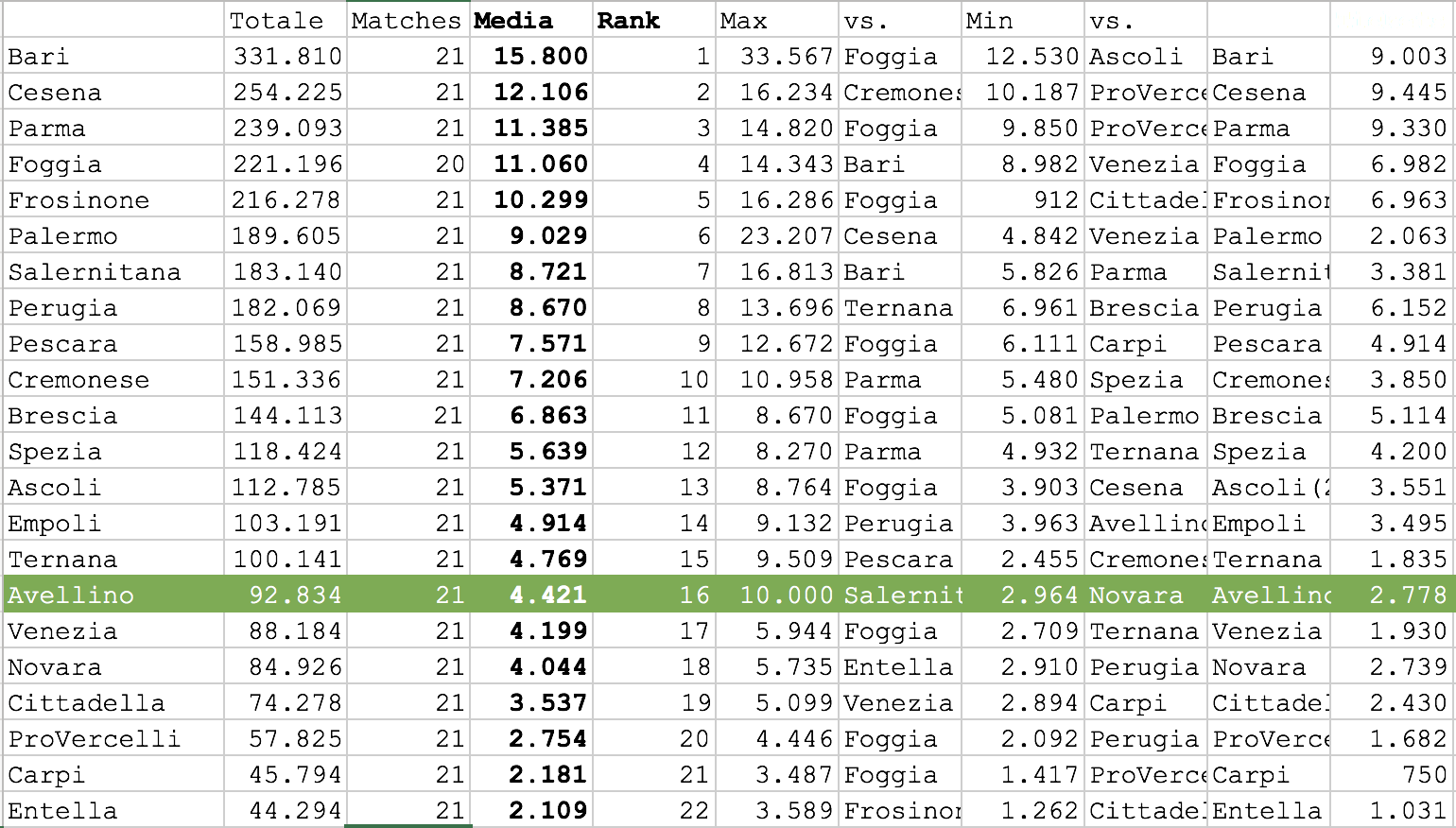 Serie B – Statistiche spettatori: Crollo Avellino, bene Parma e Foggia